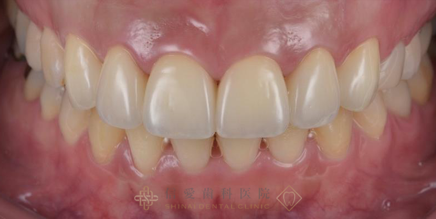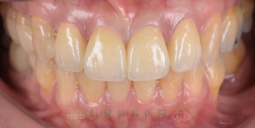 12ヶ月(矯正治療)、保定期間後1ヶ月(セラミック治療) |